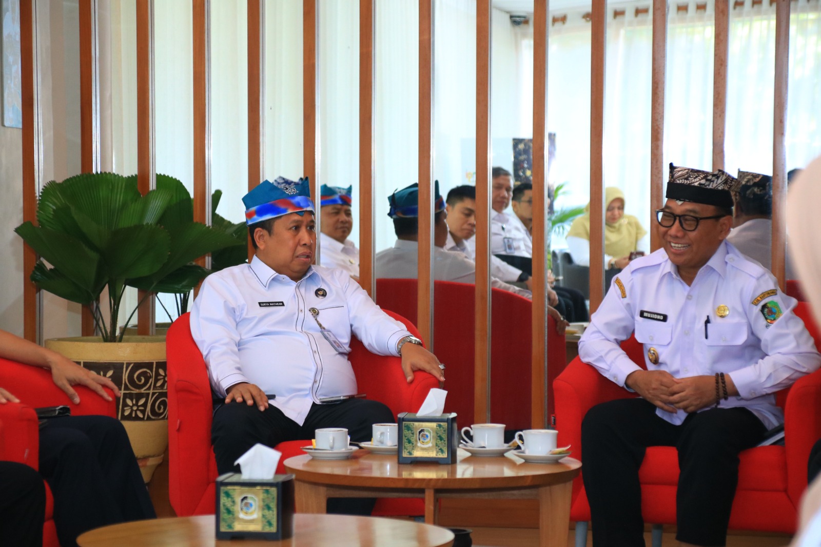 Di Pemkab Banyuwangi, rombongan Deputi diterima langsung oleh Wakil Bupati Banyuwangi, Mujiono. Sementara itu, di gedung dewan, mereka disambut oleh Ketua DPRD Kabupaten Banyuwangi, I Made Cahyana Negara.