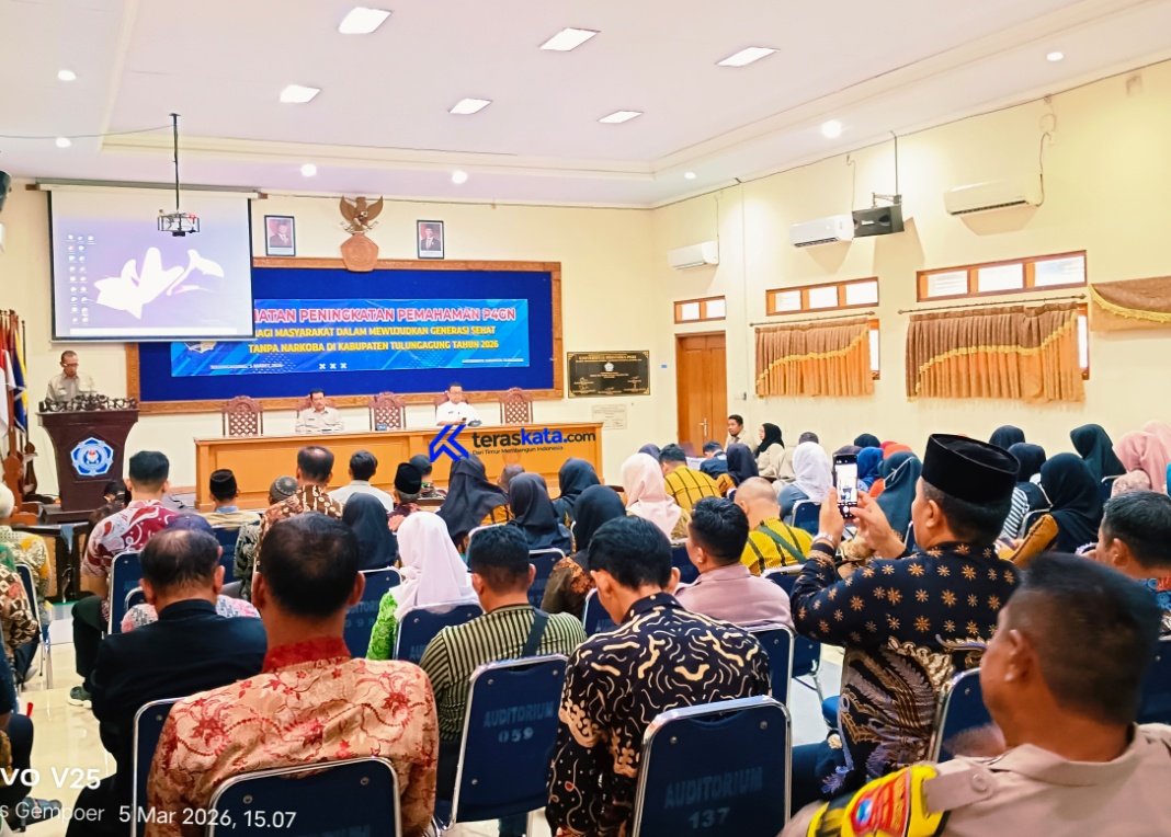 TULUNGAGUNG – Pemerintah Kabupaten Tulungagung melalui Badan Kesatuan Bangsa dan Politik (Bakesbangpol) menggelar kegiatan bertajuk “Peningkatan Pemahaman P4GN bagi Masyarakat dalam Mewujudkan Generasi Sehat Tanpa Narkoba” pada Kamis, 5 Maret 2026.