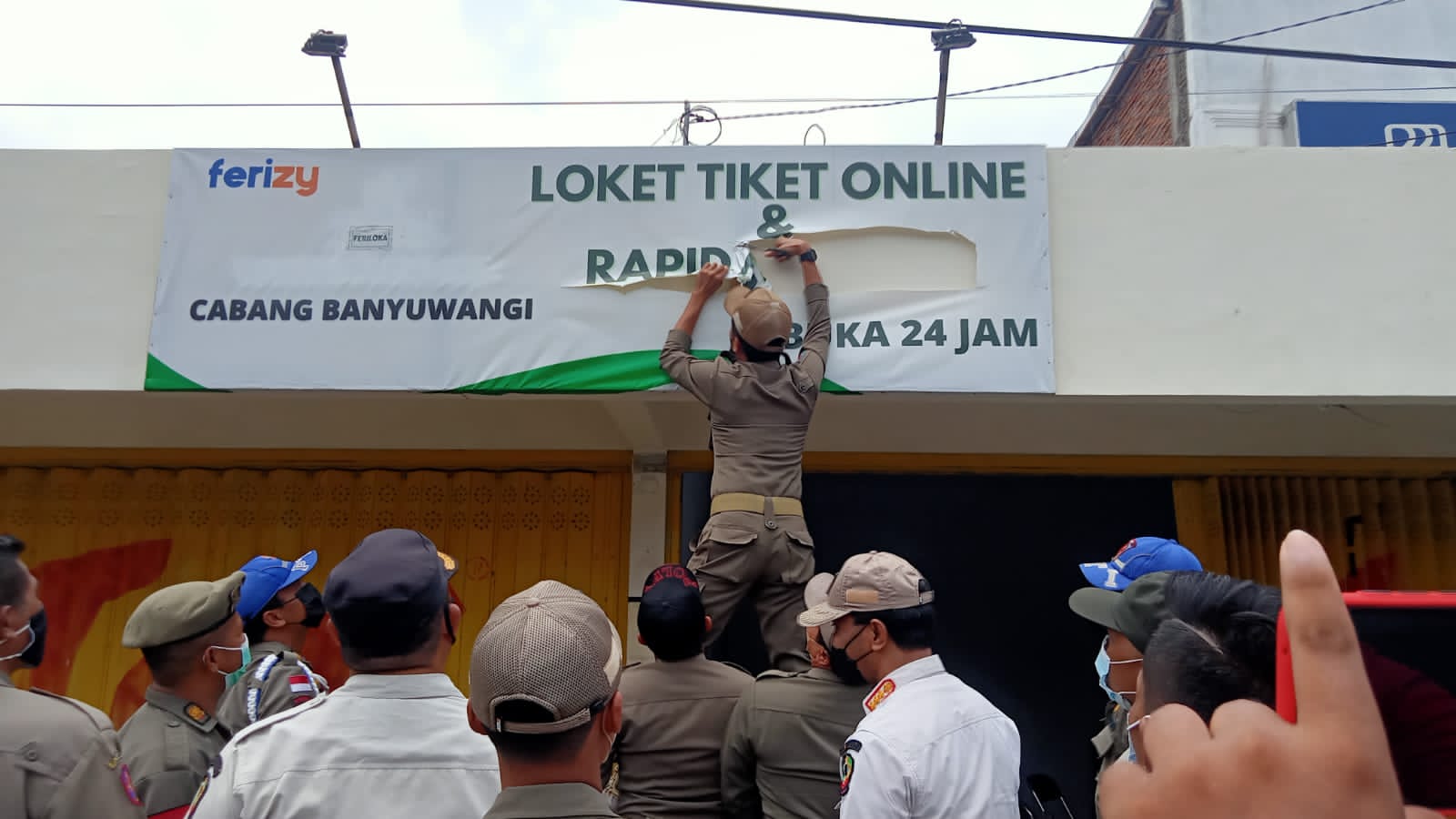 Salah satu gerai yang ditutup dan disegel dengan garis polisi lokasinya berada tepat di utara Balai Desa Ketapang, Kalipuro. Namun sialnya, baru beberapa menit petugas beranjak, pengelola nekat merusak garis polisi dan kembali membuka gerainya.