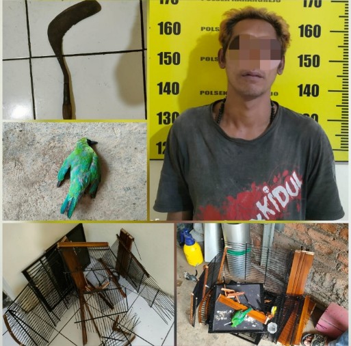 Dari penangkapan terhadap pelaku, anggota Polsek Karangrejo mengamankan barang bukti berupa, sebilah sabit, sebuah kurungan burung yang sudah rusak, dan seekor burung yang sudah mati.