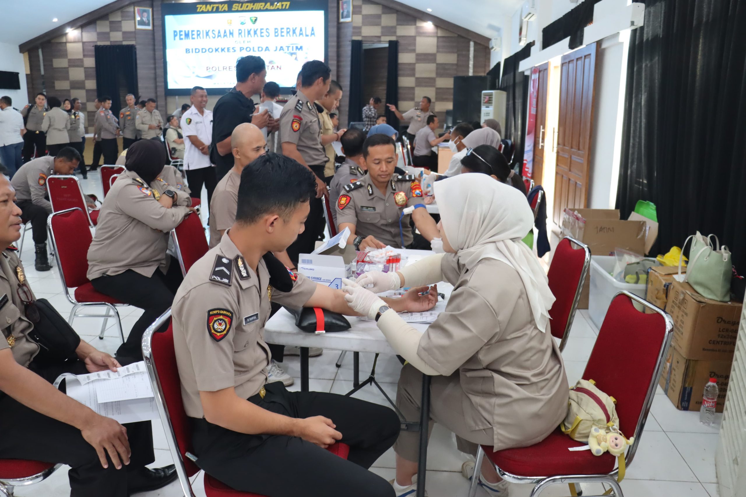 MAGETAN – Bidang Kedokteran dan Kesehatan (Biddokes) Polda Jawa Timur menggelar kegiatan pemeriksaan kesehatan (rikkes) berkala bagi seluruh personel Polres Magetan, Kamis (23/4/2026). Kegiatan ini merupakan upaya memastikan kondisi kesehatan anggota tetap optimal dalam mendukung pelaksanaan tugas kepolisian.