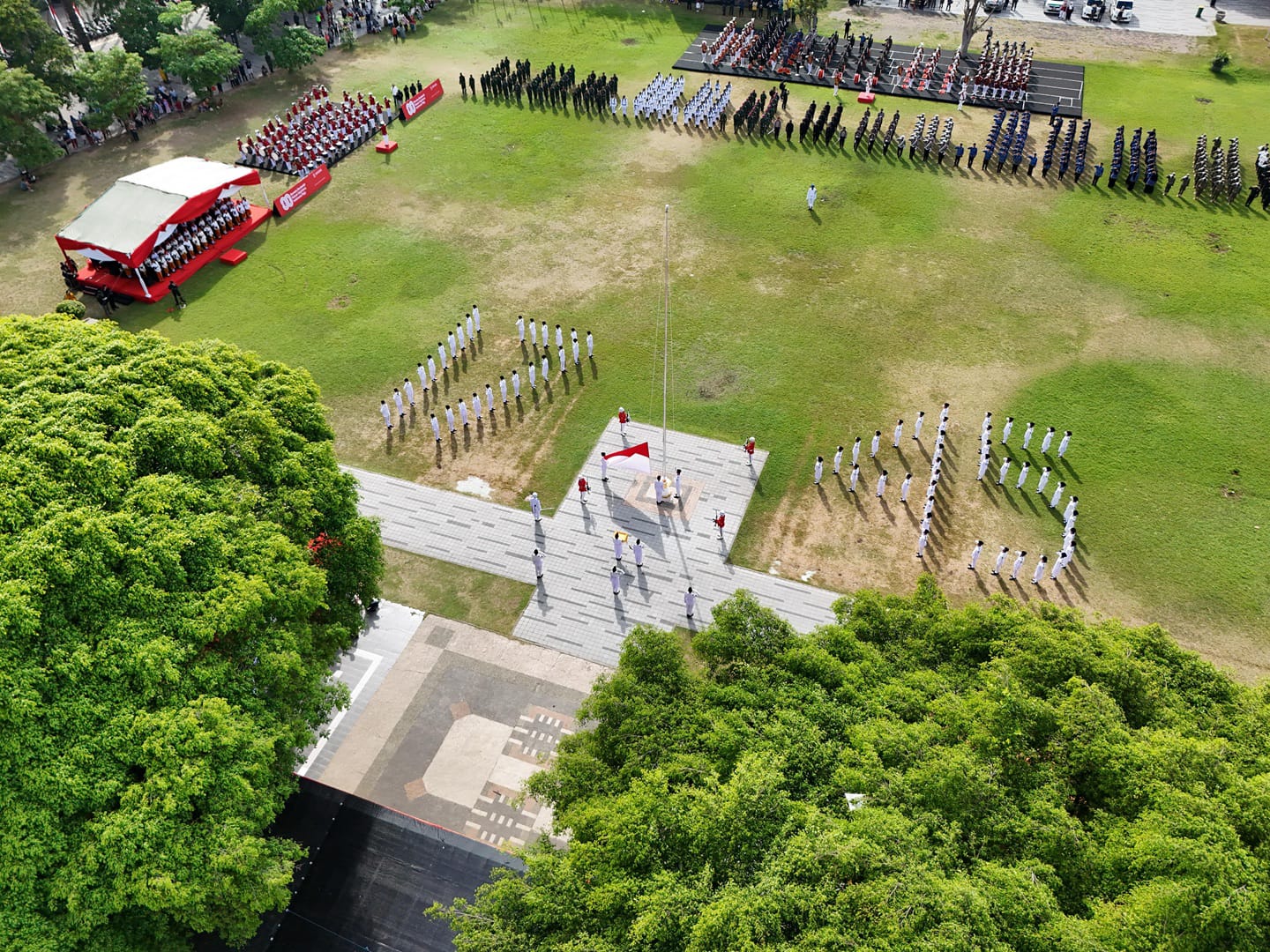 Bertindak sebagai petugas pengibaran bendera antara lain Jasmine Azzahra Adya Putri (pembawa baki), Revalizha Nazzar Syahzidane (pengerek bendera), Andreas Oktaviani (pembentang bendera), Andrian Edi Chandra (pengulur bendera), dan Dinar Ayu Wulandari (pemberi aba-aba”.(PUTRI)