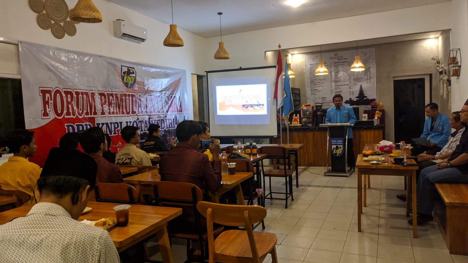 ” Agar tidak mudah terhasut isu sara yang dapat memecah belah kerukunan masyarakat. Maka kami dari DPD KNPI Kota Kediri mengadakan pelaksanaan diskusi untuk kedua kalinya di tahun 2022,” Kata, Ketua Panitia Asyhari Eko Prayitno, dalam diskusi Pemuda anti SARA, Jumat (23/12/2022) malam.