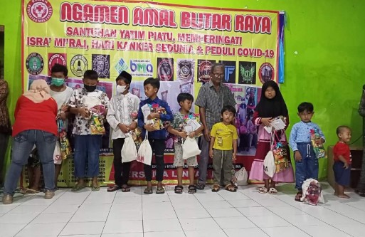 Dalam agenda ini kita memberikan santunan kepada anak anak yatim piatu yang mana orang tua mereka merupakan korban dari Covid -19 dan juga yang meninggal akibat kanker yang di derita,” ujar Arif .
