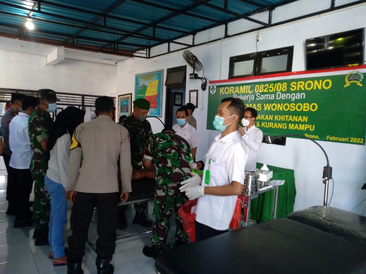 TERASKATA.Com, Banyuwangi- Koramil 0825 /08 bekerjasama dengan Puskesmas Wonosobo menggelar kegiatan khitan yang dilaksanan di wilayah Koramil 0825/08 Srono, Kabupaten Banyuwangi. Rabu (09/02/2022).