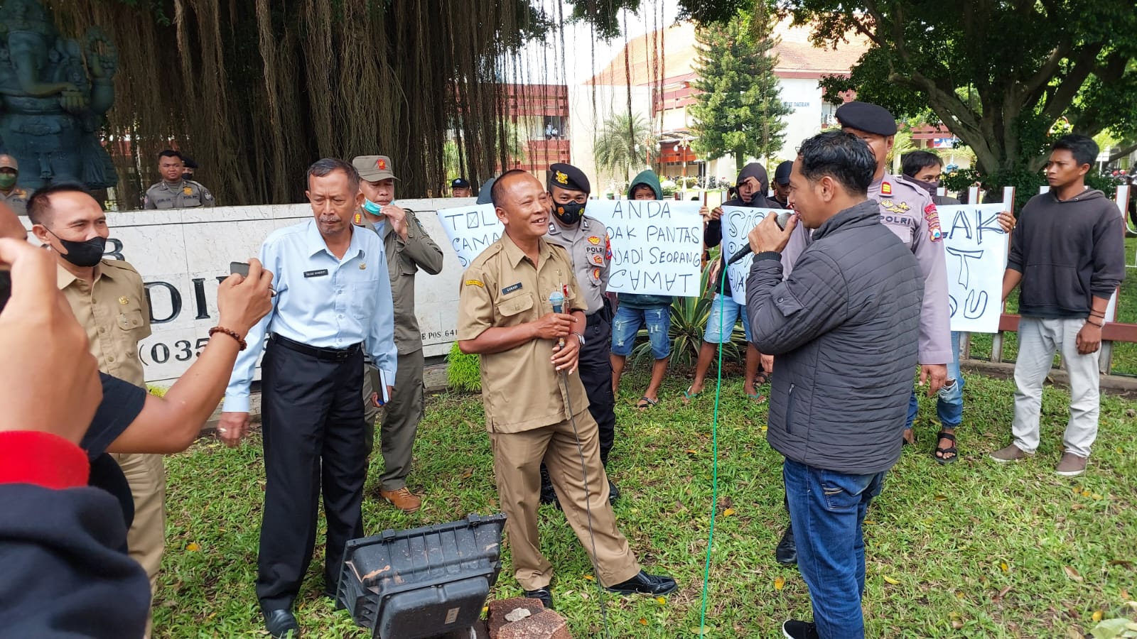 Dalam orasinya Saiful Iskak koordinasi aksi menyampaikan tindakan oknum Camat tersebut mendapat kecamanan publik.menyayangkan bahwa seorang aparatur di pemda Kediri yang diberikan kepercayaan sebagai pemimpin di sebuah kecamatan bisa melakukan tindakan KDRT terhadap istrinya.
