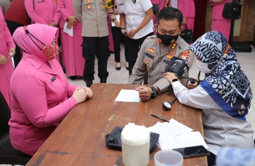 Sebelum melakukan donor darah, anggota Polres Kediri terlebih dahulu diperiksa kondisi kesehatannya, seperti dilakukan pengecekan suhu tubuh dan cek tekanan darah, oleh Tim Medis Kesehatan.