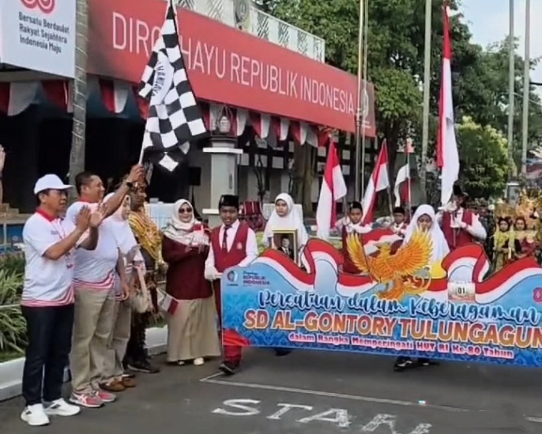 Tulungagung,Teraskata.com – Pemerintah Kabupaten (Pemkab) Tulungagung melalui Dinas Pendidikan, gelar Pawai Budaya Bhinneka Tunggal Ika, tingkat SD/MI, dalam rangka memperingati HUT ke 80 Kemerdekaan RI. Minggu (24/8/2025).