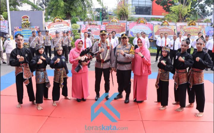 Madiun,Teraskata.com – Diawali dengan pertunjukan pencak silat dari Ikatan Pencak Silat Indonesia (IPSI) yang menampilkan kekayaan budaya dan kearifan lokal yang menjadi ciri khas wilayah Madiun, acara penyambutan kedatangan Kapolres baru, AKBP Mohammad Zainur Rofik, S.I.K., berlangsung dengan penuh semangat dan kehormatan. Acara pisah sambut ini berlangsung di lapangan Tri Brata, Polres Madiun. Jumat (17/1/2025).