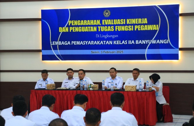 Banyuwangi,Teraskata.com – Kepala Lembaga Pemasyarakatan (Kalapas) Kelas IIA Banyuwangi, Mochamad Mukaffi memimpin rapat dinas perdana yang diadakan dalam rangka evaluasi dan percepatan kinerja seluruh pegawai, Senin (3/2).