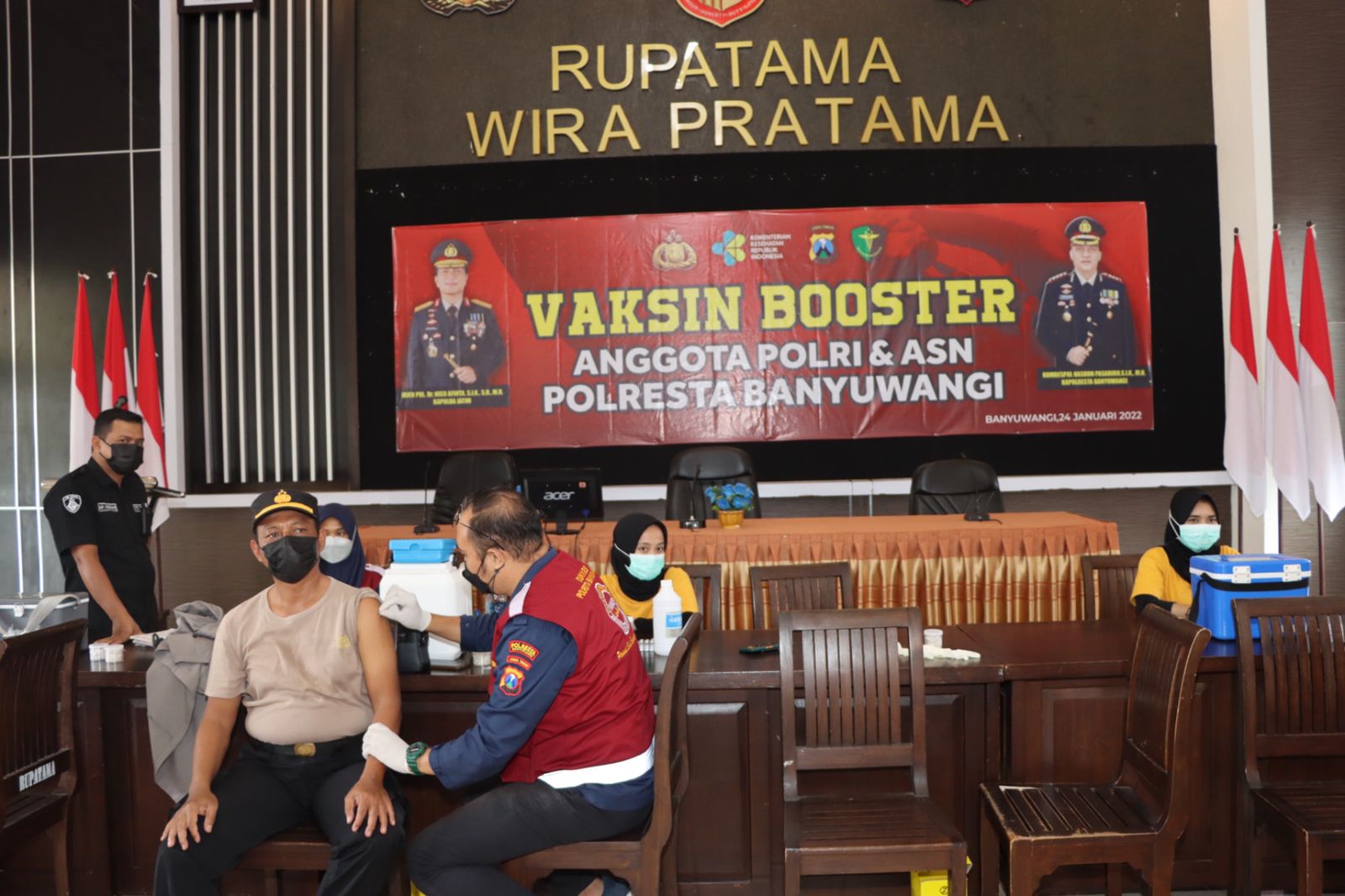 “Vaksinasi booster kepada personel dilakukan untuk meningkatkan imunitas anggota kepolisian dari paparan Covid-19. Selain itu untuk memutus mata rantai penyebaran Covid-19 maupun varian baru yang muncul yaitu Omicron,” ucap Kapolresta Banyuwangi.