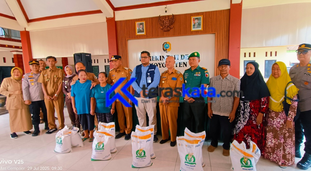 Tulungagung,Teraskata.com – Ratusan Warga desa Moyoketen, terima bantuan pangan dari Presiden RI Prabowo Subianto, yang diserahkan langsung secara simbolik oleh Bupati Tulungagung, bersama Kepala Dinas Ketahanan Pangan, dan Bulog Tulungagung, di Pendopo Desa Moyoketen, Kecamatan Boyolangu, Kabupaten Tulungagung. Selasa, (29/7/2025).