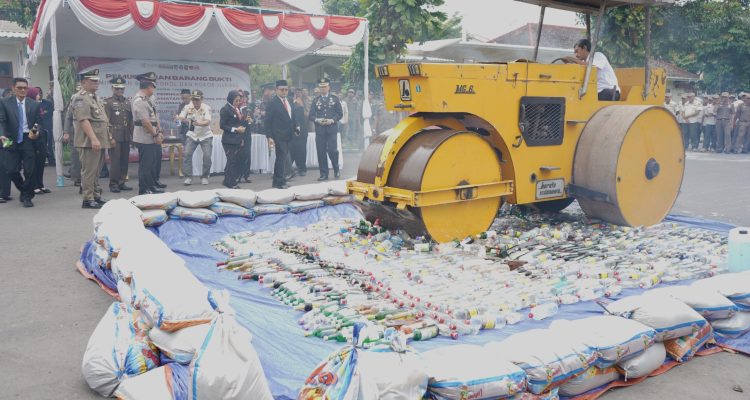 HUT Satpol PP Ke-76, Pemkab Kediri Musnahkan Miras dan Rokok Ilegal