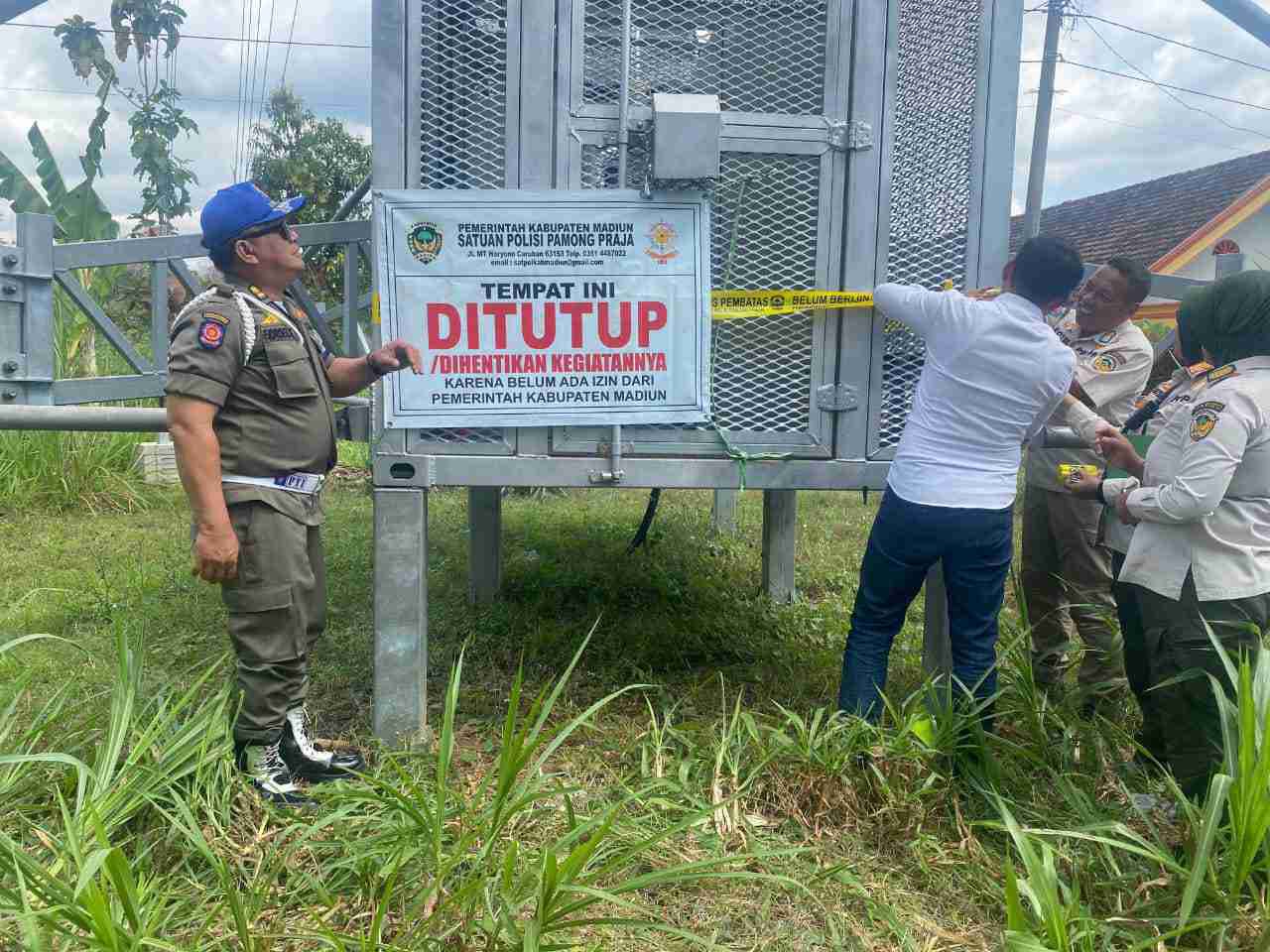 Madiun,Teraskata.com – Satuan Polisi Pamong Praja (Satpol PP) Kabupaten Madiun menyegel sebuah menara telekomunikasi tanpa izin di Desa Morang, Kecamatan Kare. Kamis (31/7/25).